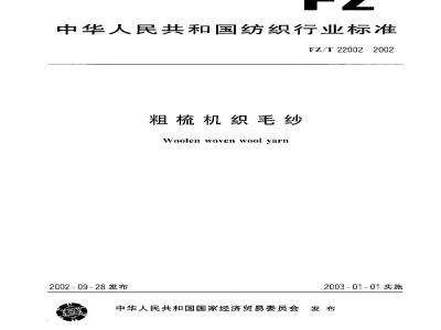 本标准规定了粗梳机织毛纱的技术要求、试验方法、验收规则、包装和标志等技术特征。本标准适用于鉴定粗梳机织纯毛、毛混纺、毛型化纤机织毛纱的品质。 FZ/T 22002-2002 粗梳机织毛纱 FZ/T22002-2002 标准下载解压密码:www.bzxz.net