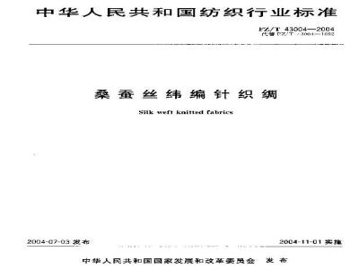 桑雍丝伴缩针织绸安织物组织结均分为单而统物、双面纺物、平效织物.罗效纠物提化织物、范类FZ/T43004—2004