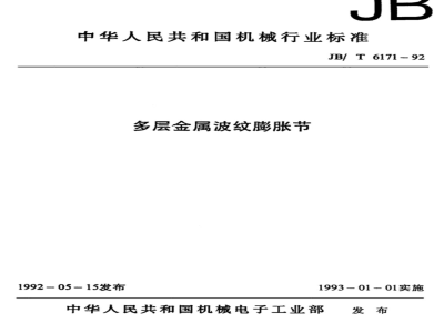 本标准规定了多层金属波纹膨胀节的分类、技术要求、试验方法、检验规则和标志、包装、运输及贮存。 本标准适用于管路热补偿用圆截面多层U型金属波纹膨胀节。 本标准也适用于管路减震、柔性联接用圆截面多层U型金属波纹膨胀节。 JB/T 6171-1992 多层金属波纹膨胀节 JB/T6171-1992 标准下载解压密码:www.bzxz.net