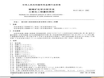 中文名称:银精矿化学分析方法 三氧化二铝量的测定