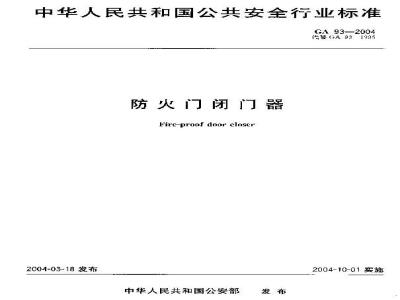 本标准规定了防火门闭门器的分类、规格、标记、要求、试验装置、试验方法、检验规则、标志、包装、运输和贮存等。本标准适用于安装在防火门和防火窗上使用的无定位装置的闭门器。 GA 93-2004 防火门闭门器 GA93-2004 标准下载解压密码:www.bzxz.net