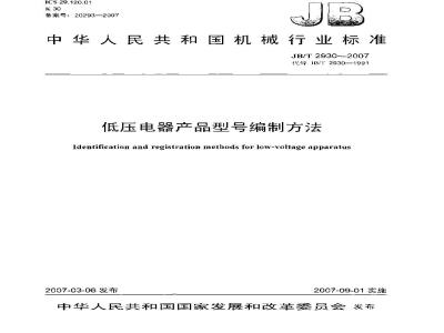 本标推规定了低压电器产品型号编制方法及型号登记办法。JB/T2930--2007