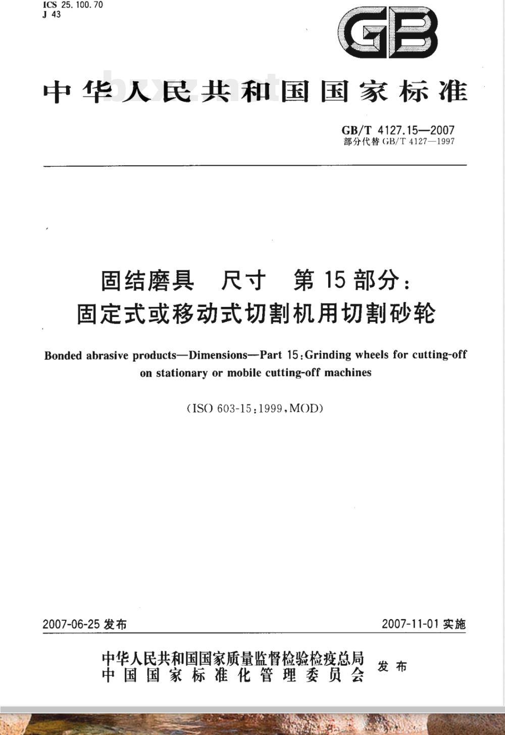 中文名称:固结磨具 尺寸 第15部分:固定式或移动式切割机用切割砂轮