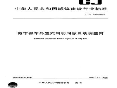 本标准为首次发布的城镇建设行业标准。本标准在制定过程中参考了美国汽车工程师协会标准SAEJ1461《手动调整臂试验方法》、SAEJ1462《外置式自动间隙调整臂试验方法》、SAEJ1513《外置式自动间隙调整臂性能要求》和日本汽车工业协会标准JASOC449—1980《气制动器间隙调整器》。 本标准规定了城市客车外置式制动间隙自动调整臂的术语和定义,要求,试验方法,检测规则及标志,包装,运输和贮存。 本标准适用于各类城市客车用自动调整臂,其他车辆用自动调整臂可参照执行。 CJ/T 242-2007 城市客车外置式制动间隙自动调整臂 CJ/T242-2007 标准下载解压密码:www.bzxz.net