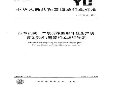 YC/T214《烟草机械三氧化碳膨胀叶些生产线》分为三个部分:-第【部分:设让导则;