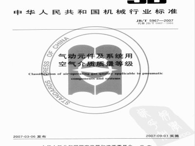 本标准规定了气动件及系统用空气介质的质量等级。本标准适用于气动件及系统用空气介质质量等级的划分。 JB/T 5967-2007 气动件及系统用空气介质质量等级 JB/T5967-2007 标准下载解压密码:www.bzxz.net