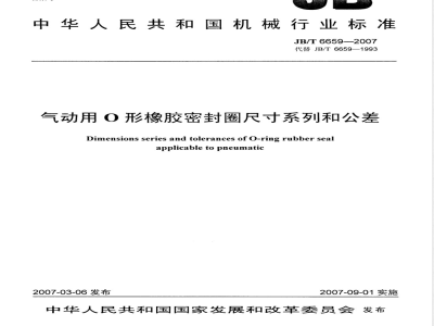 气动用0形橡胶密封圈尺寸系列和公差本标准规定了气动用O形橡胶密封圈的尺寸系列和公差,JB/T6659--2007