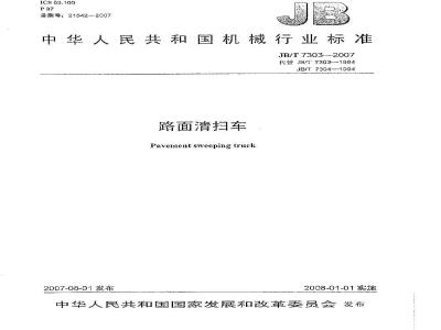 本标准规定了路面清扫车的术语和定义、要求、试验方法、检验规则及标志、包装、运输和贮存。本标准适用于采用定型汽车底盘纯扫式、纯吸式和吸扫式清扫车。 JB/T 7303-2007 路面清扫车 JB/T7303-2007 标准下载解压密码:www.bzxz.net