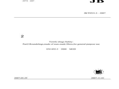 本部分规定了由聚酰胺、聚酯和聚丙烯合成纤维材料制成的圆形吊装带,最大极限工作载荷可打100t。垂直提升时以及两肢、三肢、四肢吊装带(带或不带端配件)的定级和试验方法。 本部分适用于一般材料和物品提升作业。 JB/T 8521.2-2007 编织吊索 安全性 第2部分:一般用途合成纤维圆形吊装带 JB/T8521.2-2007 标准下载解压密码:www.bzxz.net
