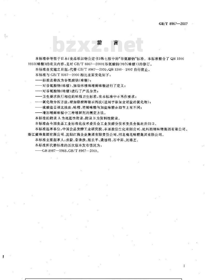 起草单位:中国食品发酵工业研究院、丰原股份生化有限公司、杭州西湖味精集团有限公司、浙江蜜蜂集团有限公司、沈阳红梅企业集团有限责任公司、河北梅花味精集团有限公司