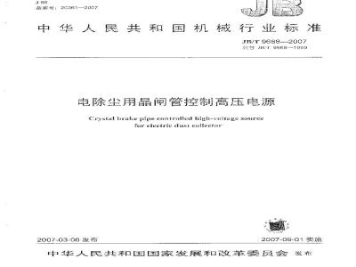 本标雅规定了电除尘用工频,晶间管移相调压控制高压电源的恐谱、技术要求J8T 9688--2007