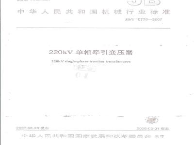 本标准规定了直供供电方式的电气化铁路牵引变电所用单相牵引变压器的术语和定义、使用条件、产品型号、性能参数、技术要求、试验分类及试验项目、试验要求及试验方法、铭牌及标志、包装、运输和贮存。本标准适用于电压等级为220kV、额定容量为12 500kVA~63 000kVA、额定频率为50Hz的单相油浸式牵引变压器,其他容量的单相牵引变压器可参照本标准。 JB/T 10776-2007 220kV单相牵引变压器 JB/T10776-2007 标准下载解压密码:www.bzxz.net