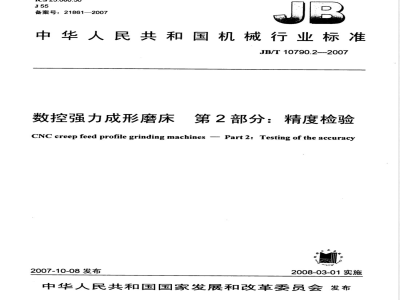 JB/T10790《数控强力成形磨床》分为三个部分:-第1部分:型式与参数;