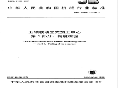 JB/T10792《五轴联动立式加工中心》分为以下两部分:第1部分:精度检验;
