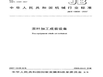 JB/T 10808-2007 茶叶加工成套设备 JB/T10808-2007 标准下载解压密码:www.bzxz.net