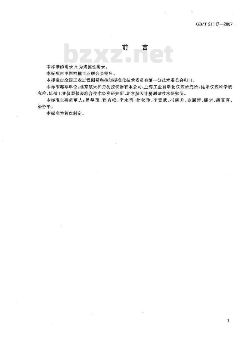 本标准由全国工业过程测量和控制标准化技术委员会第一分技术委员会归口。GB/T 21117—2007