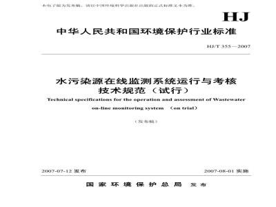 HJ/T 355-2007 水污染源在线监测系统运行与考核技术规范(试行) HJ/T355-2007 标准下载解压密码:www.bzxz.net