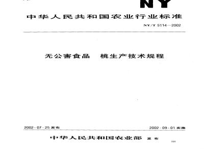 本标准规定了无公害桃生产园地选择与规划、栽植、土肥水管理、整形修剪、花果管理、病虫害防治和果实采收等技术。本标准适用于无公害桃的露地生产。 NY/T 5114-2002 无公害食品 桃生产技术规程 NY/T5114-2002 标准下载解压密码:www.bzxz.net
