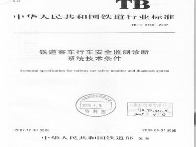 TB/T 3188-2007 铁道客车行车安全监测诊断系统技术条件 TB/T3188-2007 标准下载解压密码:www.bzxz.net