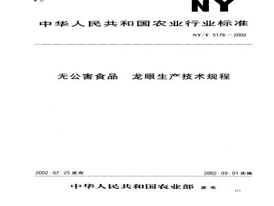 NY/T394--2000绿色食品肥料使用准则NY5023无公害食品热带水果产地环境条件NY5175无公害食品龙眼