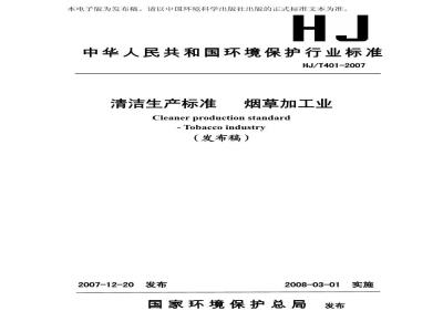本标准规定了烟草加工业卷烟生产过程清洁生产的一般要求。本标准将清洁生产标准分为五类,即生产工艺与装备要求、资源能源利用指标、污染物产生指标(末端处理前)、废物回收利用指标和环境管理要求。本标准适用于烟草加工业卷烟生产企业的清洁生产审核、清洁生产潜力与机会的判断、清洁生产绩效评定和清洁生产绩效公告制度,也适用于环境影响评价、排污许可证管理等环境管理制度。 HJ/T 401-2007 清洁生产标准 烟草加工业 HJ/T401-2007 标准下载解压密码:www.bzxz.net