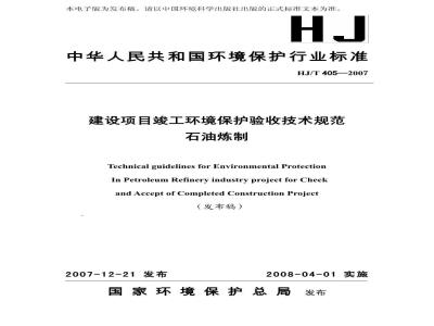 Technical guidelinesforEnvironmental ProtectionInPetroleumRefineryindustryprojectforCheckandAcceptof CompletedConstructionProject(发布稿)