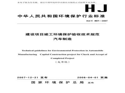 本标准规定了汽车制造业建设项目竣工环境保护验收工作范围确定、执行标准选择的原则;工程及污染治理、排放分析要点;验收监测布点、采样、分析方法、质量控制及质量保证、监测结果评价技术要求;验收调查主要内容以及方案、报告编制的技术要求。本标准适用于汽车制造业新建、改建、扩建项目竣工环境保护验收工作。机械制造业的其它建设项目可参照本规范执行。 HJ/T 407-2007 建设项目竣工环境保护验收技术规范 汽车制造 HJ/T407-2007 标准下载解压密码:www.bzxz.net