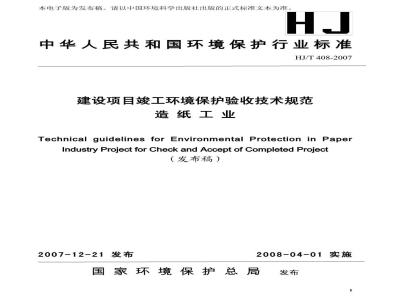 Technical guidelines for Environmental Protection in PaperIndustry Project for Check and Accept of Completed Project(发布稿)