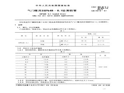 本标准适用于橡胶机械工业部门制造各种轮胎套件的充气气门嘴用的厚壁圆形63-0.1铅黄铜管。1品种