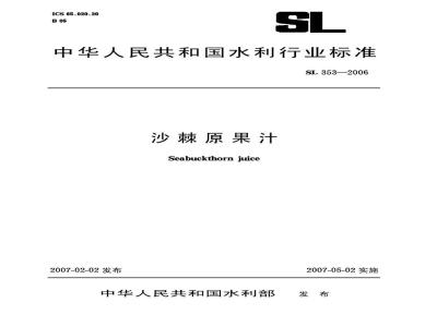 本标准批准部门:中华人民共和国水利部。本标准主持机构:水利部水土保持司。本标准解释单位:水利部沙棘开发管理中心。本标准主编单位:水利部沙棘开发管理中心。本标准出版、发行单位:中国水利水电出版社。本标准主要起草人:李永海、张红梅、赵梅霞、土小宁。本标准审查会议技术负责人:陈殿奎、文剑。本标准体例格式审查人:乐枚。1范围