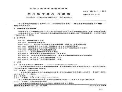 Household refrigerating appliances-RefrigeratorsGB/T 8059.1—1995