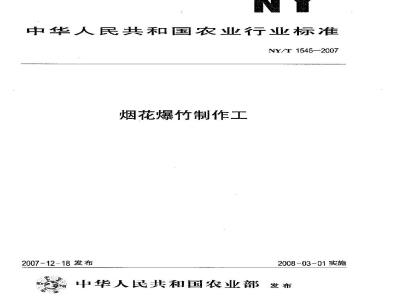 NY/T 1545-2007 烟花爆竹制作工 NY/T1545-2007 标准下载解压密码:www.bzxz.net