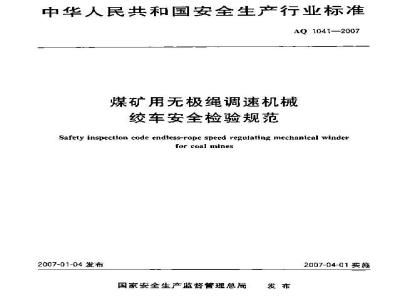 本标准规定了煤矿用无极绳调速机械绞车的产品分类、检验要求、检验内容、检验方法、检验规则。 本标准适用于煤矿地面或井下运输绞车,不适用于提升的绞车。 AQ 1041-2007 煤矿用无极绳调速机械绞车安全检验规范 AQ1041-2007 标准下载解压密码:www.bzxz.net