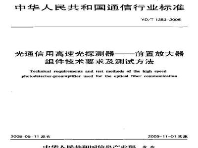I'echrical reguirements and test methods of the high speedphotudetector-preanplifier used for the optical fiber communication2005-05-11发布
