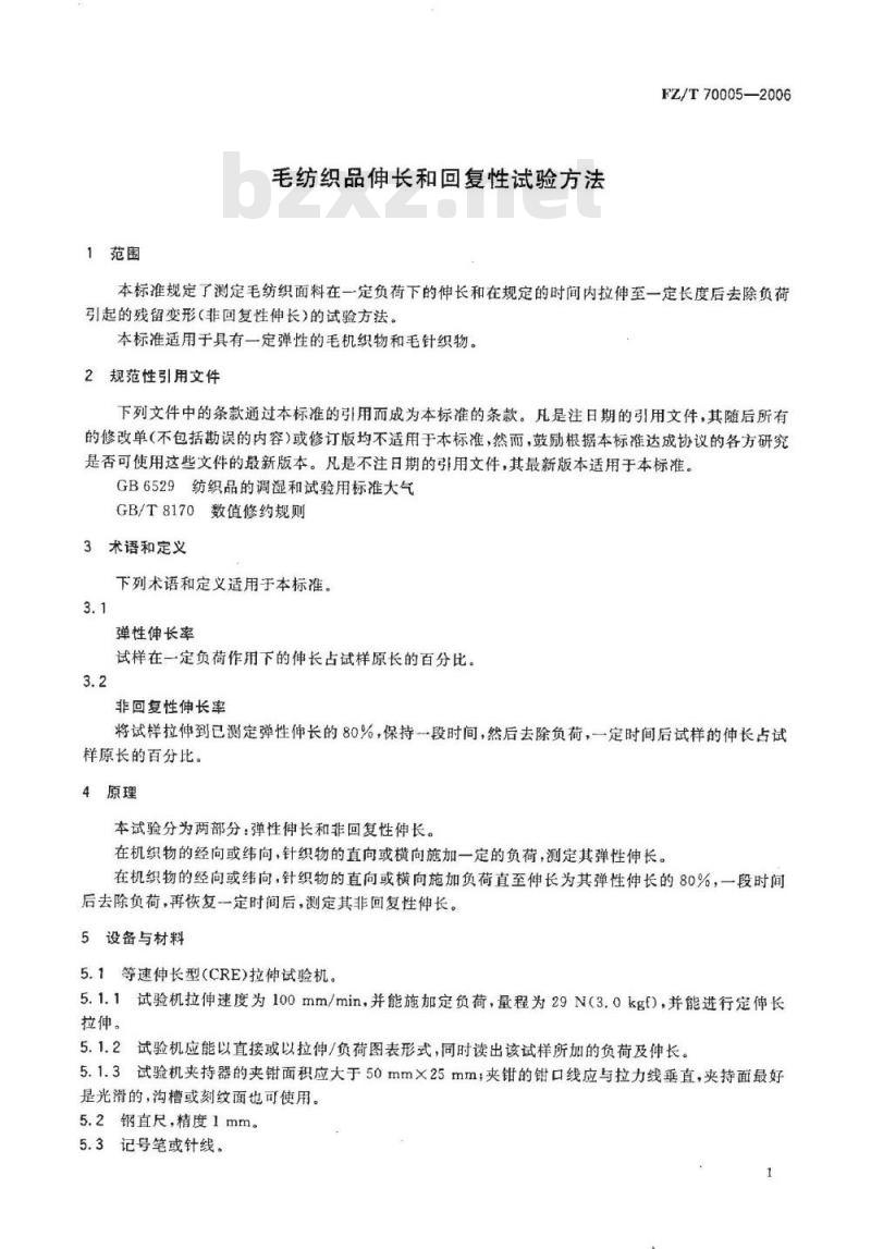 毛纺织品伸长和回复性试验方法FZ/T70005--2006免费标准bzxz.net