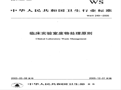 本标准规定了临床实验室废物的分类和处理原则。本标准适用于临床实验室。 WS/T 249-2005 临床实验室废物处理原则 WS/T249-2005 标准下载解压密码:www.bzxz.net