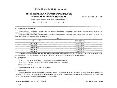 中文名称:稀土金属及其化合物化学分析方法 草酸盐重量法测定稀土总量