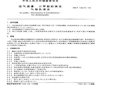 中文名称:空气质量 三甲胺的测定 气相色谱法