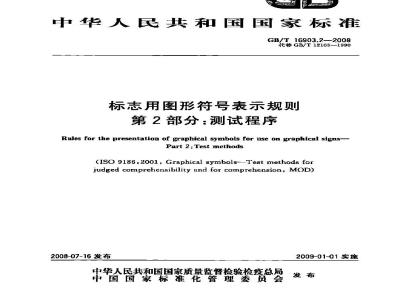 GB/T16903的本部分规定了:———图形符号标准化过程中收集所需信息时,遵循的步骤;———测试最易理解的图形符号方案时,使用的方法;———测试图形符号方案传递预期信息的准确度时,使用的方法。编制本部分目的是确保图形符号和图形标志易于理解,但是并无相应手段用于确保按本部分设计的图形符号或标志所传递的禁止或警告信息能够被人们遵守。 GB/T 16903.2-2008 标志用图形符号表示规则 第2部分:测试程序 GB/T16903.2-2008 标准下载解压密码:www.bzxz.net