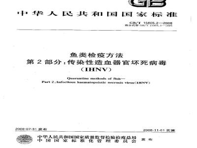 中文名称:鱼类检疫方法 第2部分:传染性造血器官坏死病毒(IHNV)