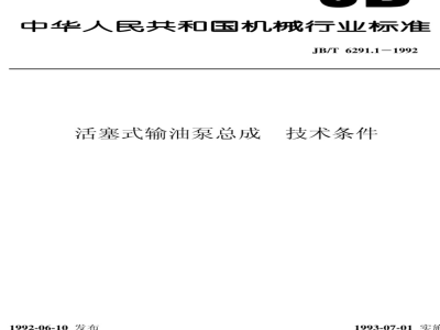 JB/T 6291.1-1992 活塞式输油泵总成 技术条件 JB/T6291.1-1992 标准下载解压密码:www.bzxz.net