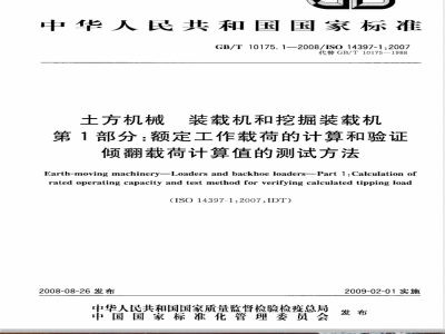 ---对IS014397-1:2007中引用的国际标准,用已被采用为我国的标准代替对应的国际标准。本部分代替GB/T10175—1988《装载机额定工作载荷》。本部分与GB/T10175·1988相比主要变化如下:-标准名称“装载机额定工作载荷”改为“土方机械装载机和挖掘装载机第1部分:额定工作载荷的计算和验证倾翻载荷计算值的测试方法”;—对术语和定义进行了补充;