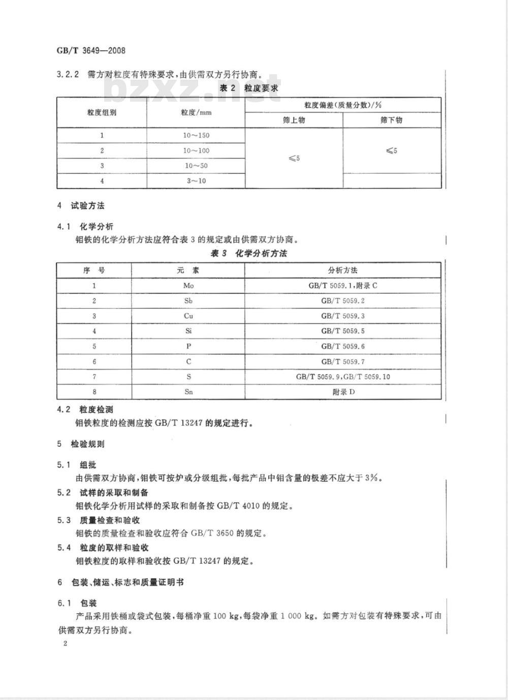本标准规定了钼铁的技术要求、试验方法、检验规则以及包装、储运、标志和质量证明书。本标准适用于炼钢、铸造或合金材料中作为钼元素添加剂的钼铁。2规范性引用文件