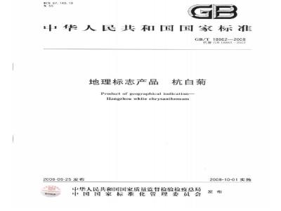 本标准规定了杭白菊的术语和定义、地理标志产品保护范围、要求、试验方法、检验规则及标志、标签、包装、运输、贮存。本标准适用于国家质量监督检验检疫行政主管部门根据《地理标志产品保护规定》批准保护的杭白菊。 GB/T 18862-2008 地理标志产品 杭白菊 GB/T18862-2008 标准下载解压密码:www.bzxz.net
