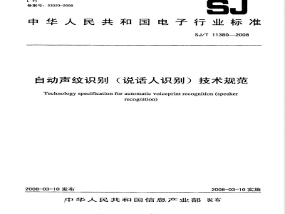 中文名称:自动声纹识别(说话人识别)技术规范