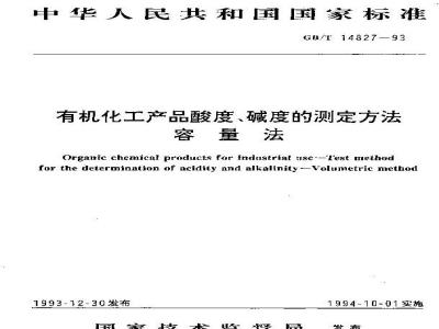Organke chemlcal produets for fudustrlal use Teat methodFor 1he determlnatlo of acidity and alkalinlty Volumetrlc methadGB/T14827—93