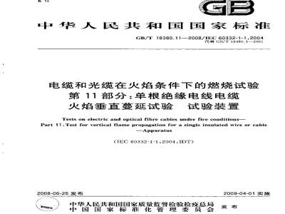 GB/T 18380,11—2008/IEC 60332-1-1:2004代替GB/T18380.1—2001