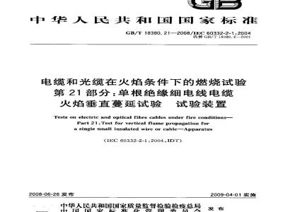 GB/T18380的本部分规定厂在火焰条件下,单根绝缘细电线电缆或细光缆火焰垂直蔓延试验的设备。