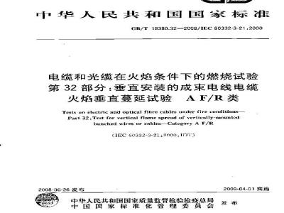本部分为G/T183的的第32部分,本部分等川采用1EC60332-3-21,20CC电缆在火熔条件下的燃让验第5-21部分:巫直安整的成束心线也缆火焰重直芯延试验A交/R类立版),为使于处用,本部分作了下列缩性修改:)本部分名称修改为:“电和光缆在火焰条竹下的燃烧或验急32部分:垂安装的或求心轴电缆火焰垂烹莫症试晓AF/R类;h)与木部分务你相对应:英文名称修改为:\Testanelectricndopticalfibrecab.csurccrircconditons-Prrl 3?:Tesr for vertical flame sprend pf vertieally-muuated bunchel wirurj nrcables—Categnry AF/R\