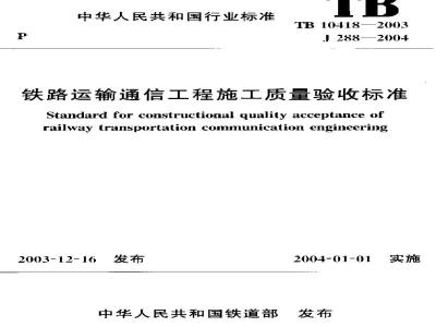 铁路运输通信工程施工质量验收标准Standard for constructional quality acceptance ofrailway transportation comnmunication enginccringTB 10418—-2003